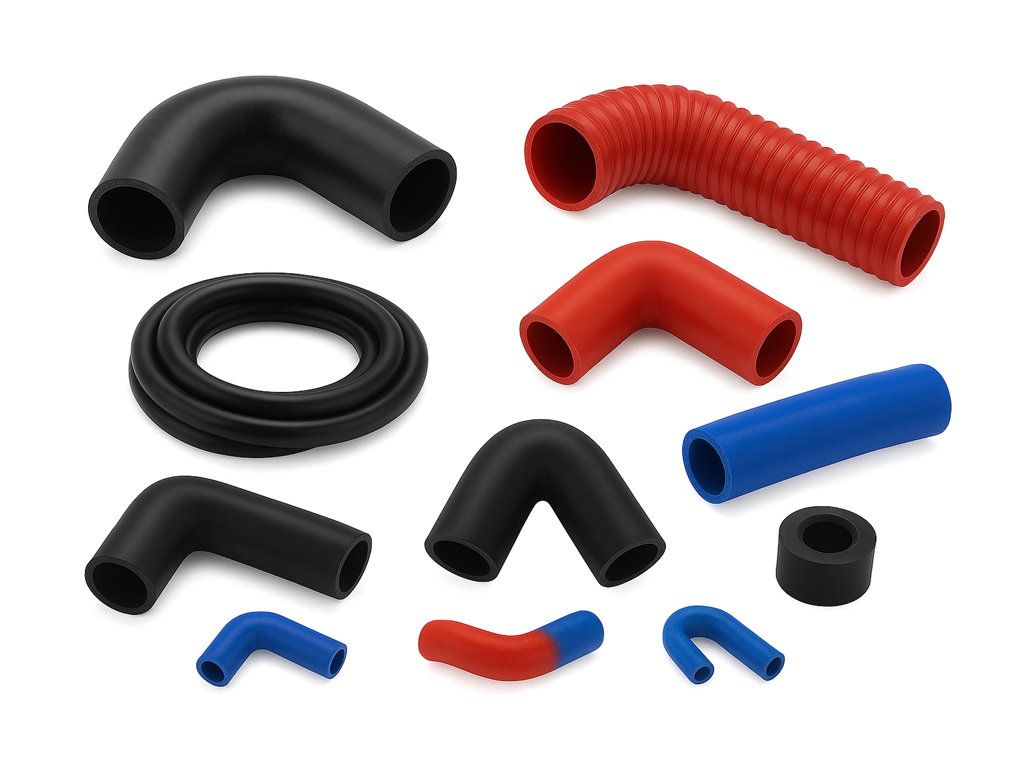 Rubber grades used to manufacture parts include: Natural Rubber (NR), Styrene Butadiene Rubber (SBR), Nitrile Rubber (NBR), EPDM, Silicone Rubber, Neoprene (CR), Fluoroelastomer (FKM/Viton®), Polyurethane (PU)