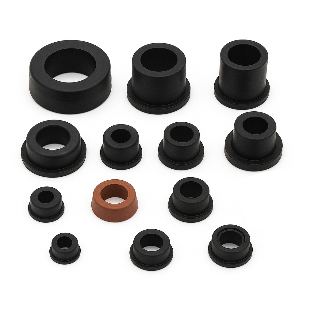 Rubber grades used to manufacture parts include: Natural Rubber (NR), Styrene Butadiene Rubber (SBR), Nitrile Rubber (NBR), EPDM, Silicone Rubber, Neoprene (CR), Fluoroelastomer (FKM/Viton®), Polyurethane (PU)